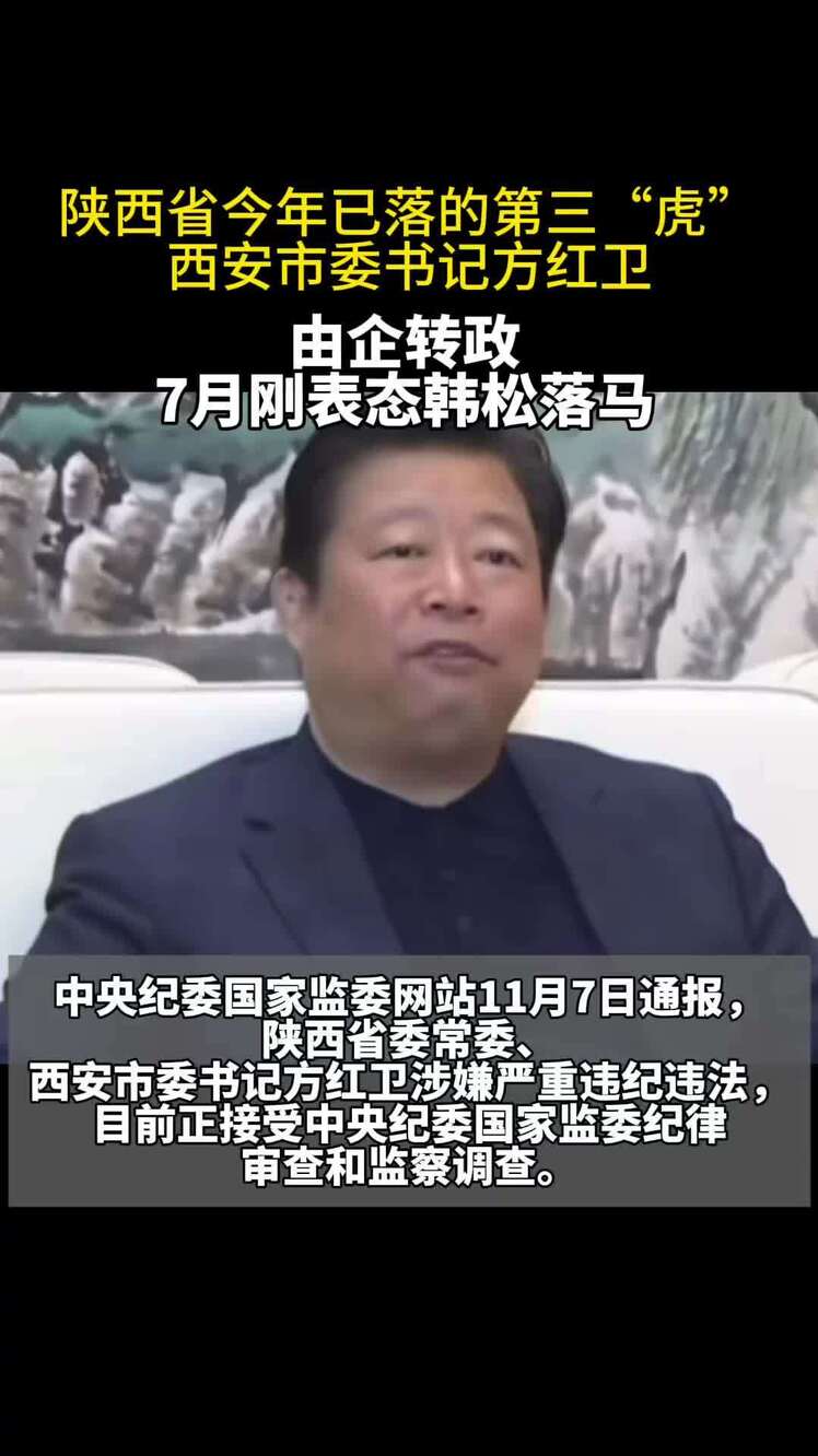 西安市委书记方红卫任上落马,由企转政,7月刚表态韩松被查