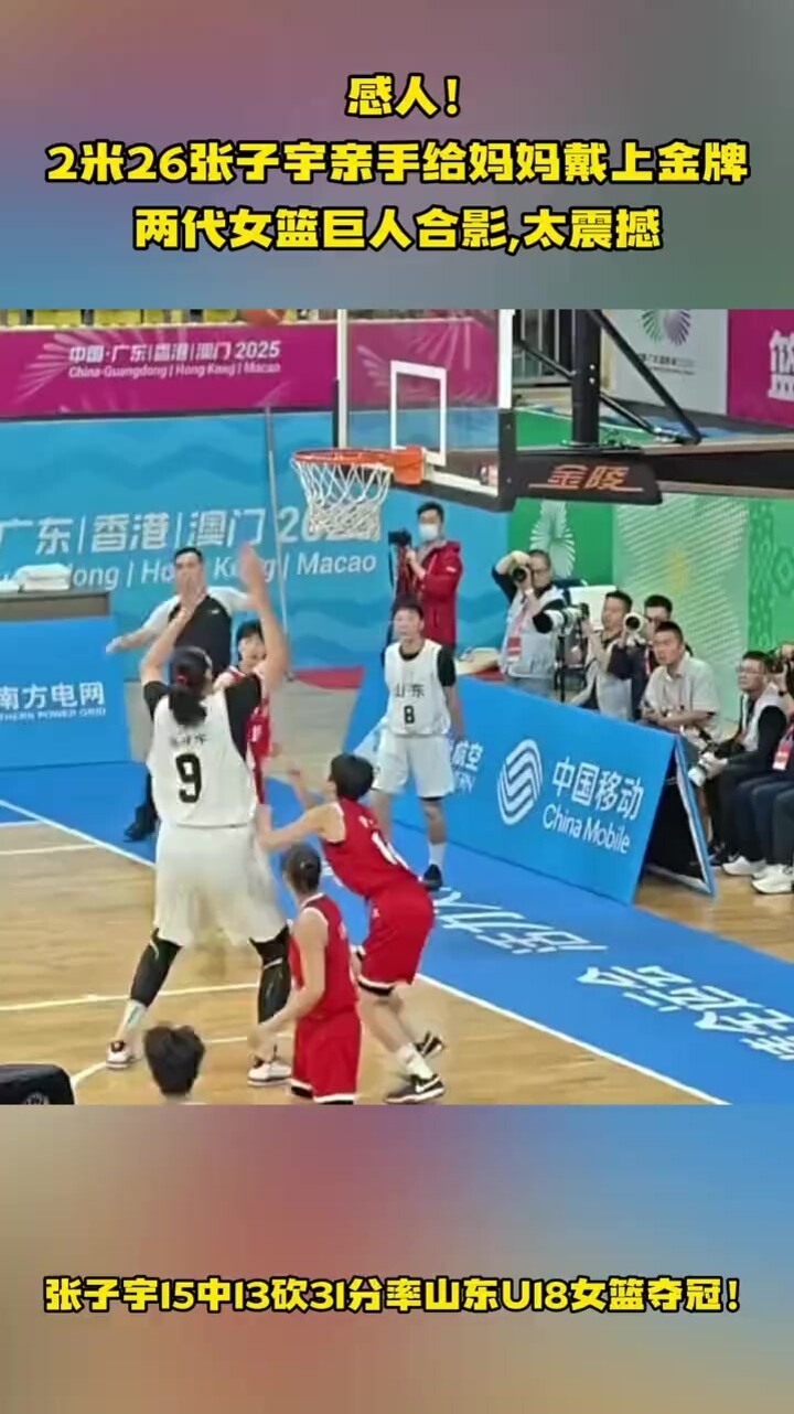 感人!2米26张子宇亲手给妈妈戴上金牌,两代女篮巨人合影,太震撼