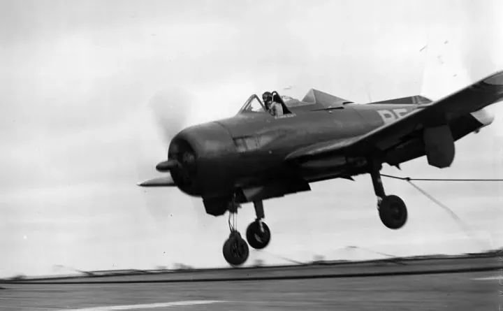 图24. 中队长格雷驾机在“游骑兵”号航母上的着舰瞬间