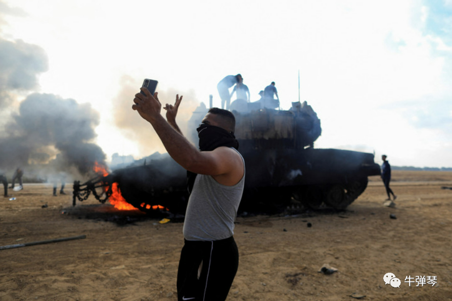 3,视频更显示,一辆以军坦克熊熊燃烧,受伤的坦克兵被哈马斯战士揪出,还有以色列姑娘被带走的画面,场面非常血腥。据称至少数十名以军士兵被俘,包括以军少将,前所未有。