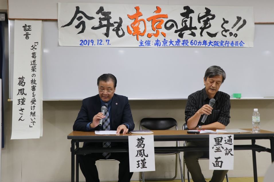 葛道荣的儿子葛凤瑾(左一)曾前往日本,向日本民众讲述父亲的亲身经历