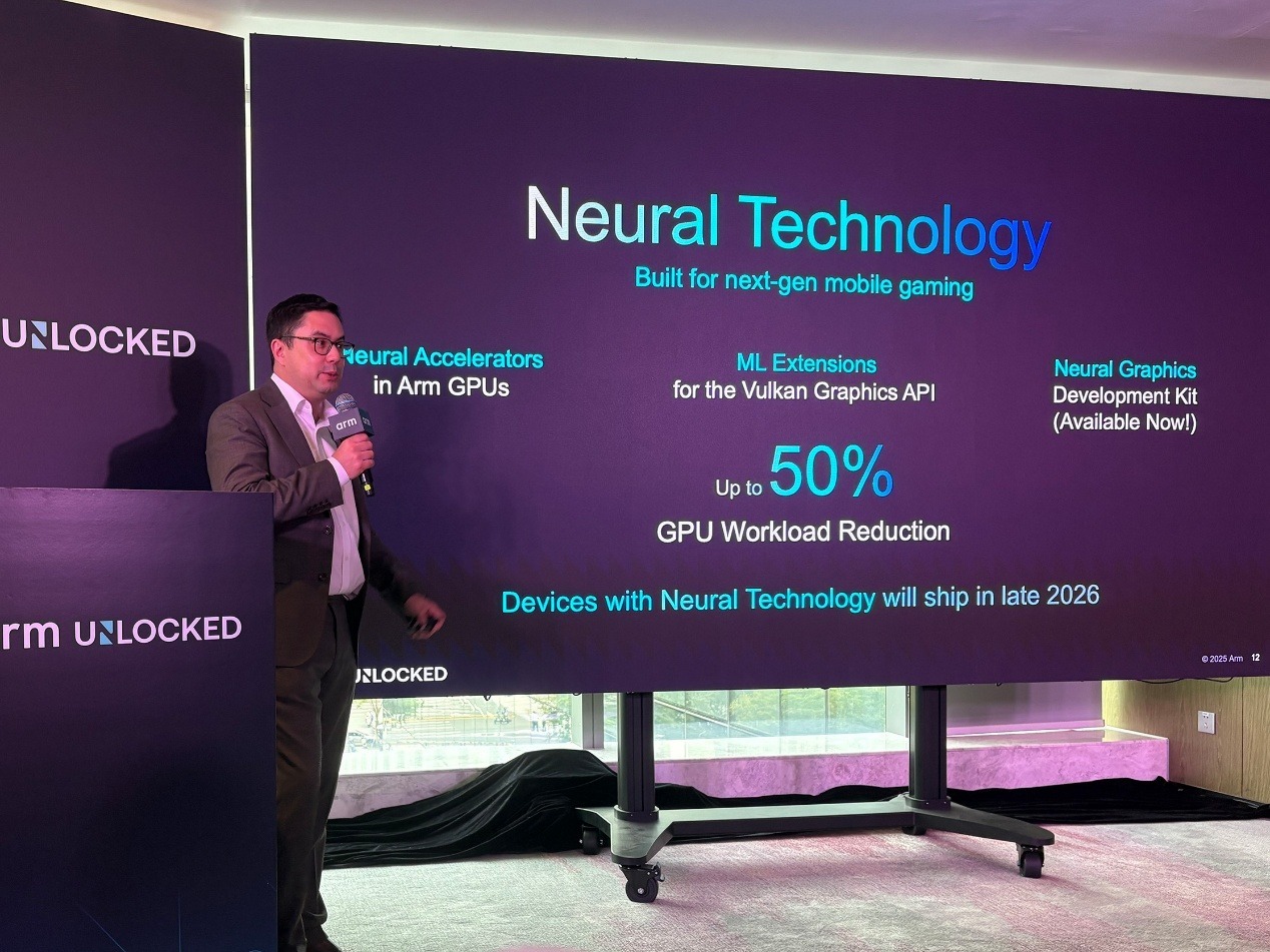 另外,James McNiven在媒体采访环节还介绍了即将在明年终端设备中搭载的为下一代移动游戏打造的“Arm Neural Technology”(Arm 神经技术)。该技术利用GPU神经加速器和Vulkan ML扩展,能实现高达50%的GPU工作负载降低!