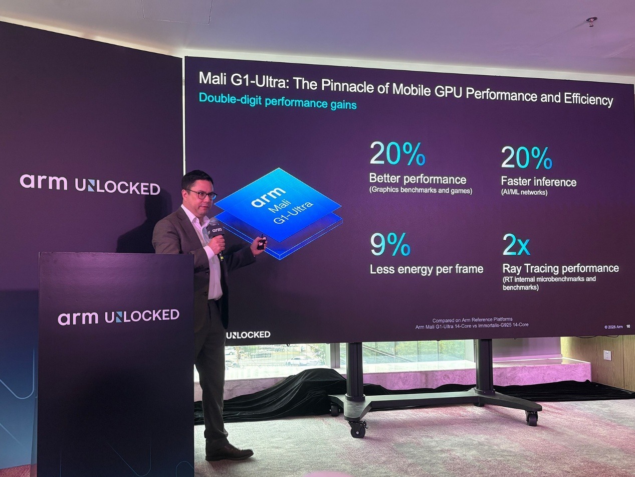 在图形处理方面,全新的Mali G1-Ultra GPU同样实现了性能与能效的完美平衡。数据显示,Mali G1-Ultra在实现20%的性能提升的同时,其每帧能耗也降低了9%。这一“增效降耗”的成果,对于追求极致画质和流畅体验的移动游戏而言意义重大。