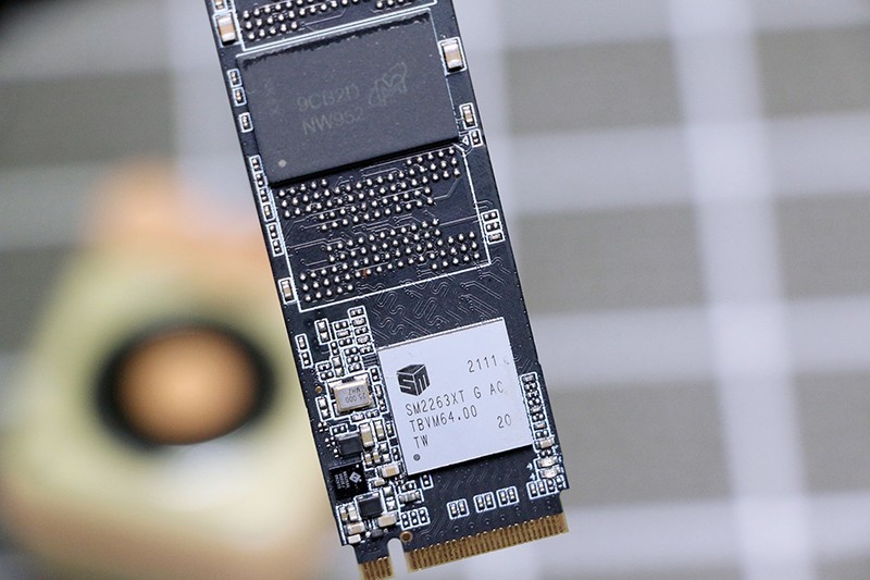 一般固态硬盘上都会标注有主控型号以及闪存颗粒名称,可以看到这款台电幻影NP900固态硬盘颗粒是编号是9CB2DNW952,不难看出是镁光NW952原厂颗粒,单颗容量为256GB,部分位置预留有闪存颗粒扩展位,其主控方面则采用慧荣SM2263XT,可以支持NVMe 1.3协议,传输模式为PCIe 3.0 x4。