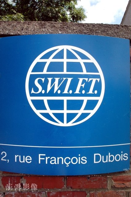 SWIFT logo at its Belgium HQ (PHOTO/Pengpai)