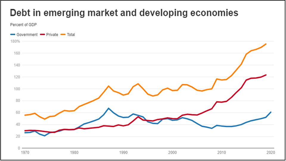 Debt in emerging markets and developing economies (IMAGE/World Bank)