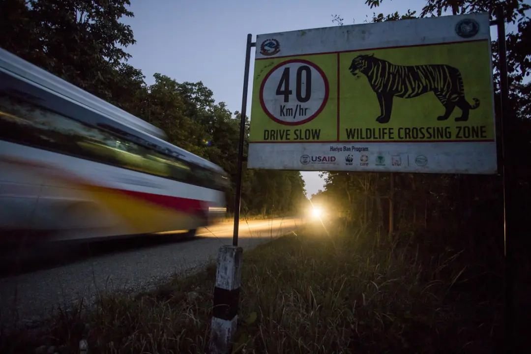 尼泊尔国家公园的老虎出没提醒标志© Emmanuel Rondeau / WWF-US