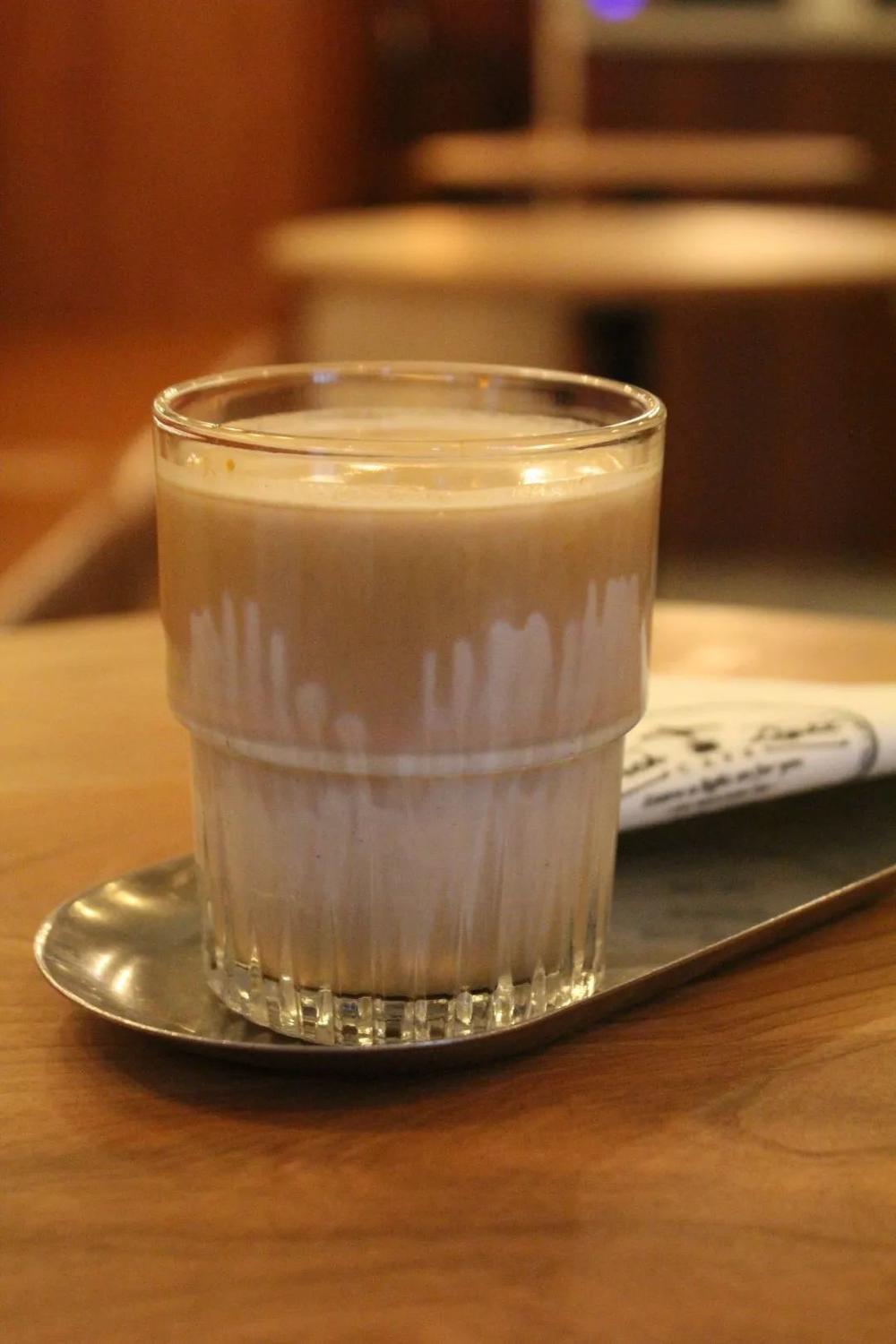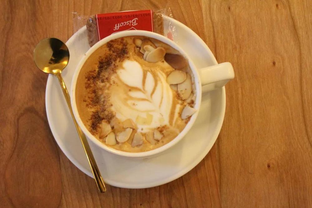 在冬季,尤其适合整上一杯榛果风味热拿铁。中深烘的豆子是经典的微苦可可风味,榛果粉、杏仁片点缀在面上,用火烤一下,浓厚的坚果香扑面而来,与店里的风格一致,协调,又温暖。