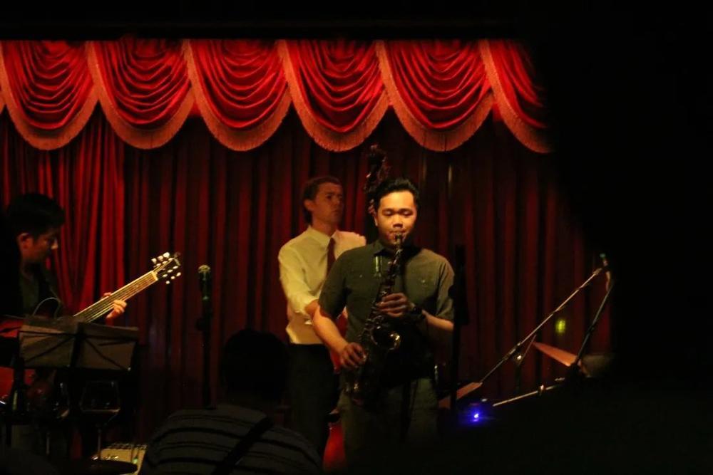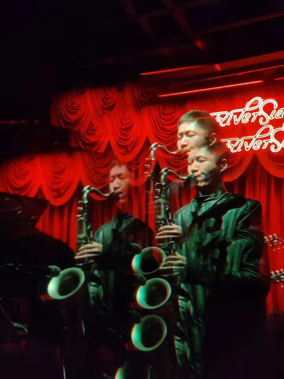 内部深红色的主色调,厚重且充满质感的红缎幕布,配上夜上海粉红女郎身上才有的柔顺羽毛,舞台上,萨克斯、钢琴、贝斯、架子鼓、吉他,全场浓郁的正宗爵士味儿向成都人民提供了来兰桂坊的新型玩法。