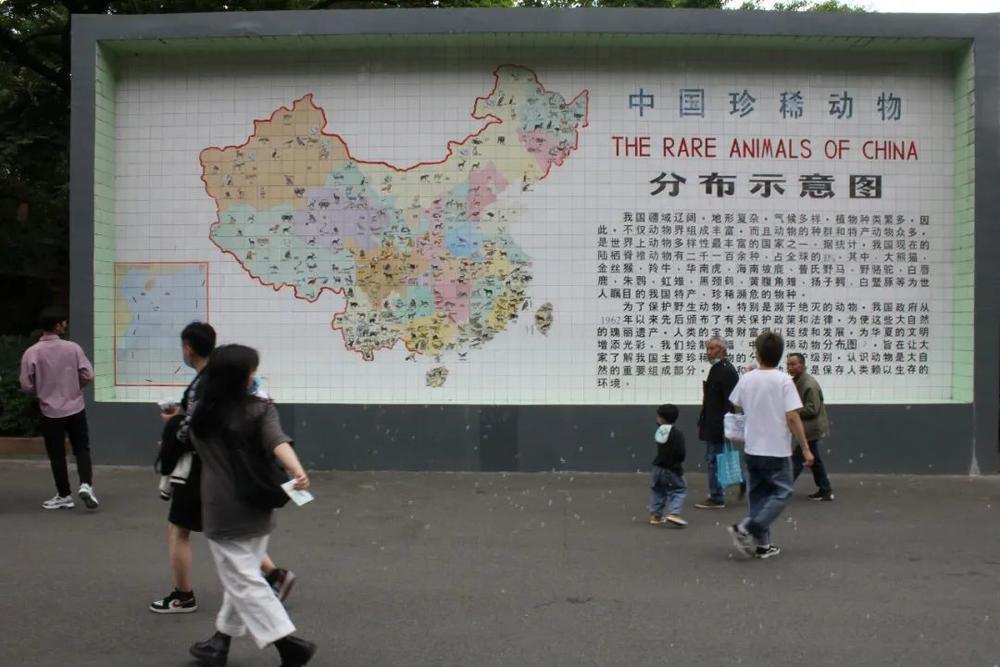 最明显的标志除了门口的山羊,便是入口处的“中国珍稀动物分布示意图”。很难相信,2022年了,竟然还能看到上世纪80年代的彩瓷砖墙,还有瓷砖上的字体更是年代感满满。