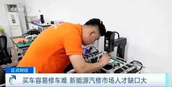 新能源汽修工人,不仅得会修车,还得懂电工,造成目前市场人才缺口,高达80%以上