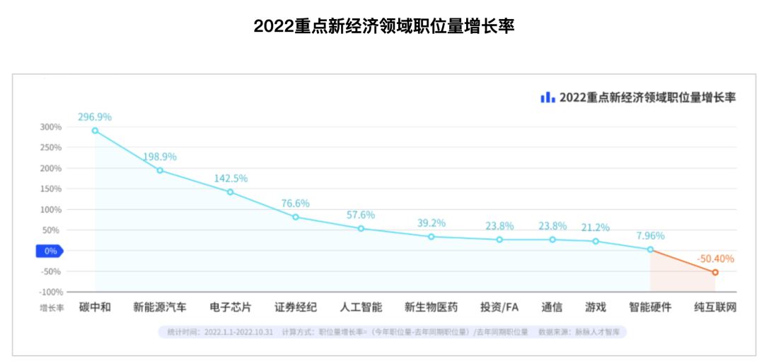 但是,碳中和、新能源、电子芯片等行业的职位量却增长了142.5%以上