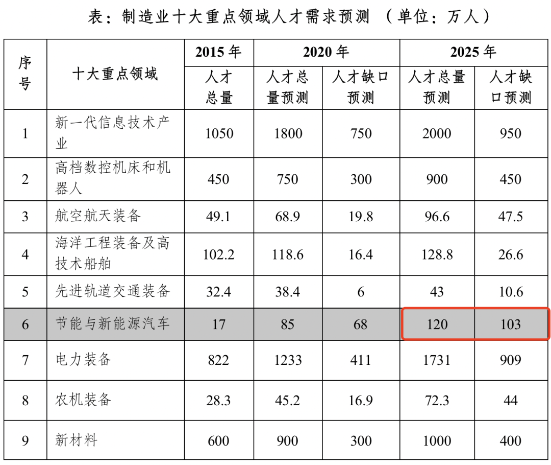 到2025年新能源人才,总量预测达到120万人,而其中缺口足足有103万