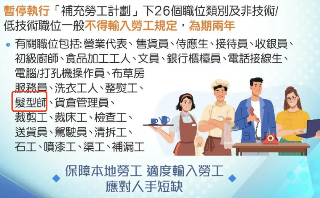 在香港,这些招不到人的行业包括:建造、运输、售货员、侍应生、收银员、理发师等26个工种
