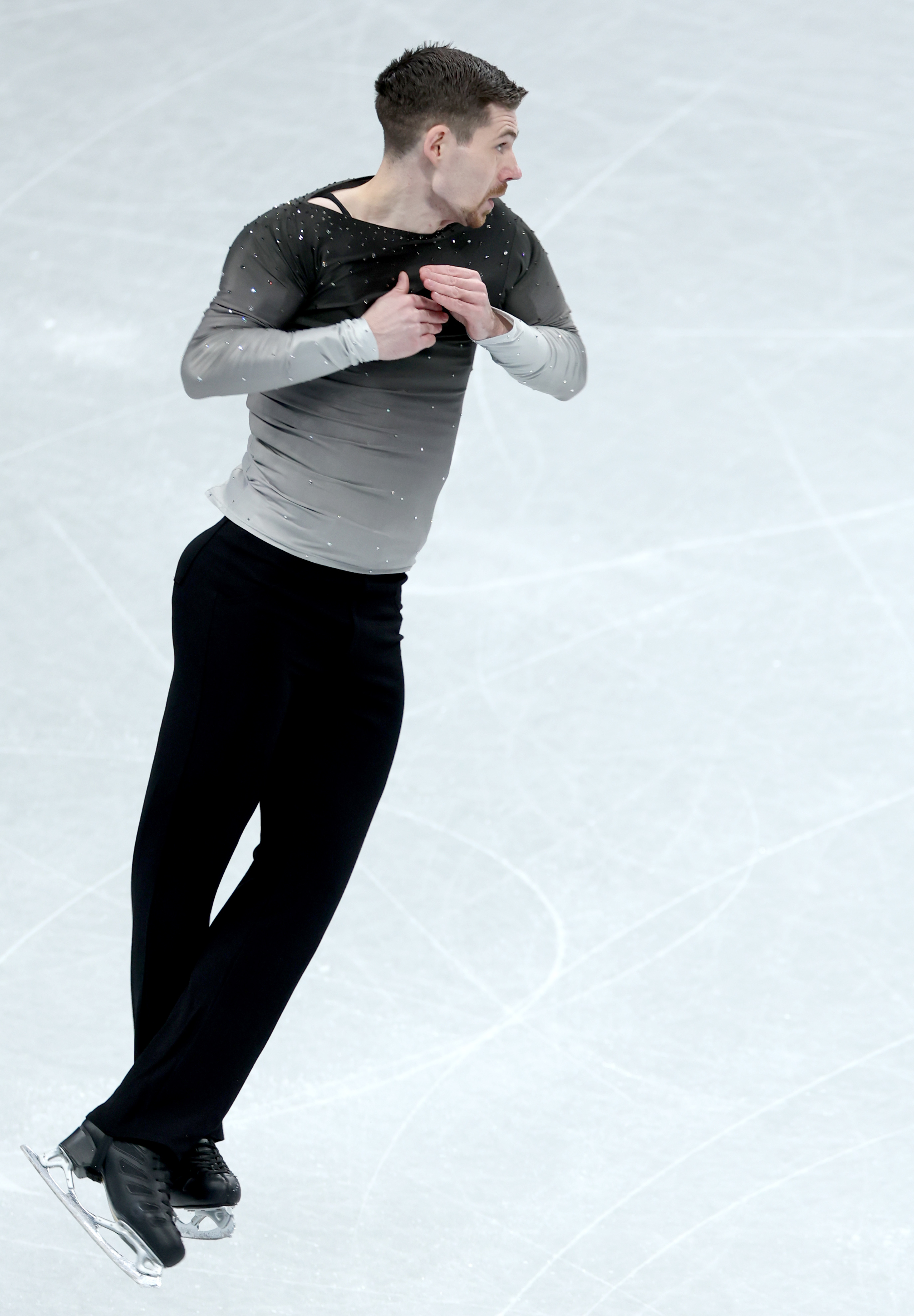 Paul Fentz of Germany competes during the figure skating team event men single skating short program at Capital Indoor Stadium in Beijing, capital of China, Feb. 4, 2022.(Xinhua/Chen Jianli)
