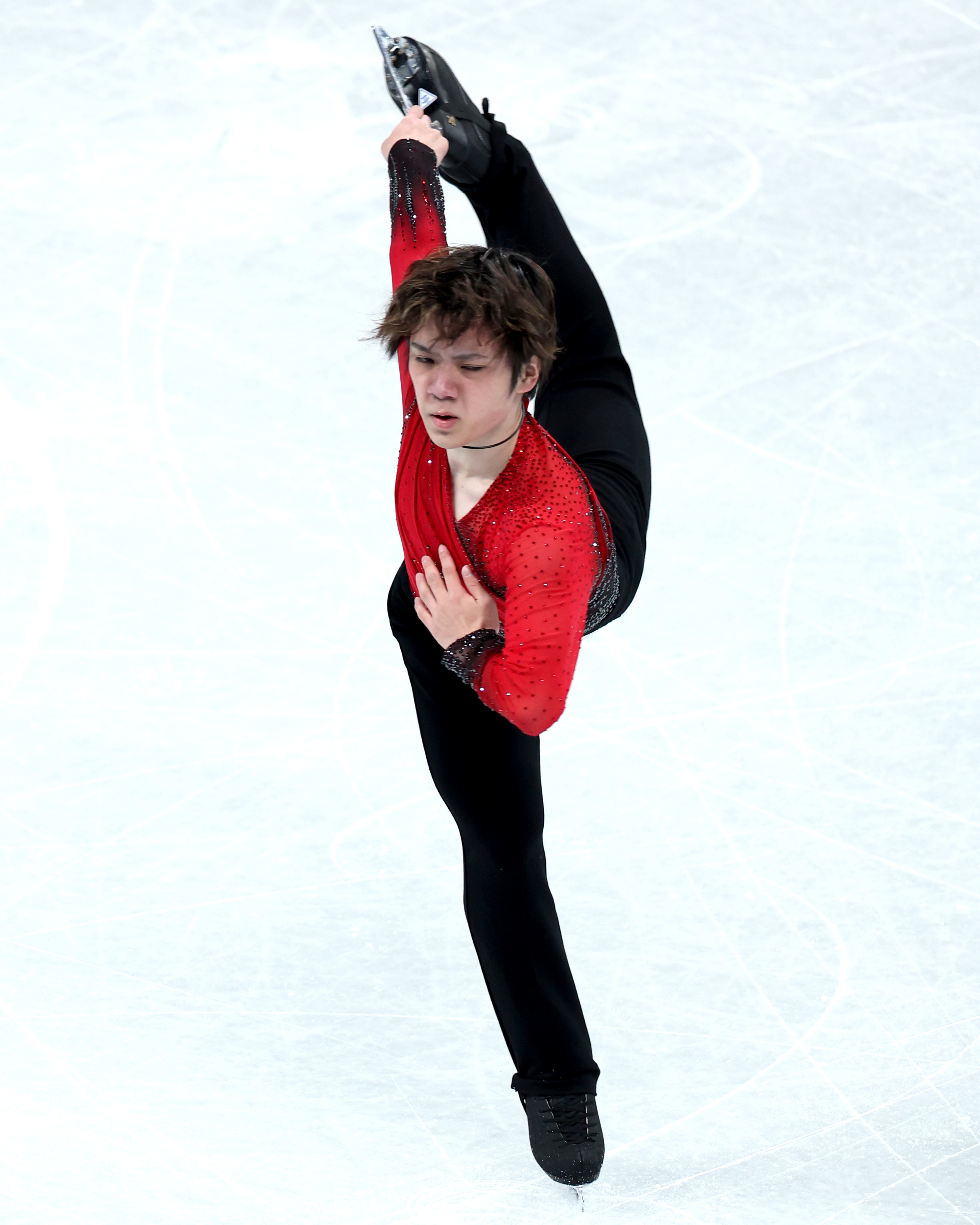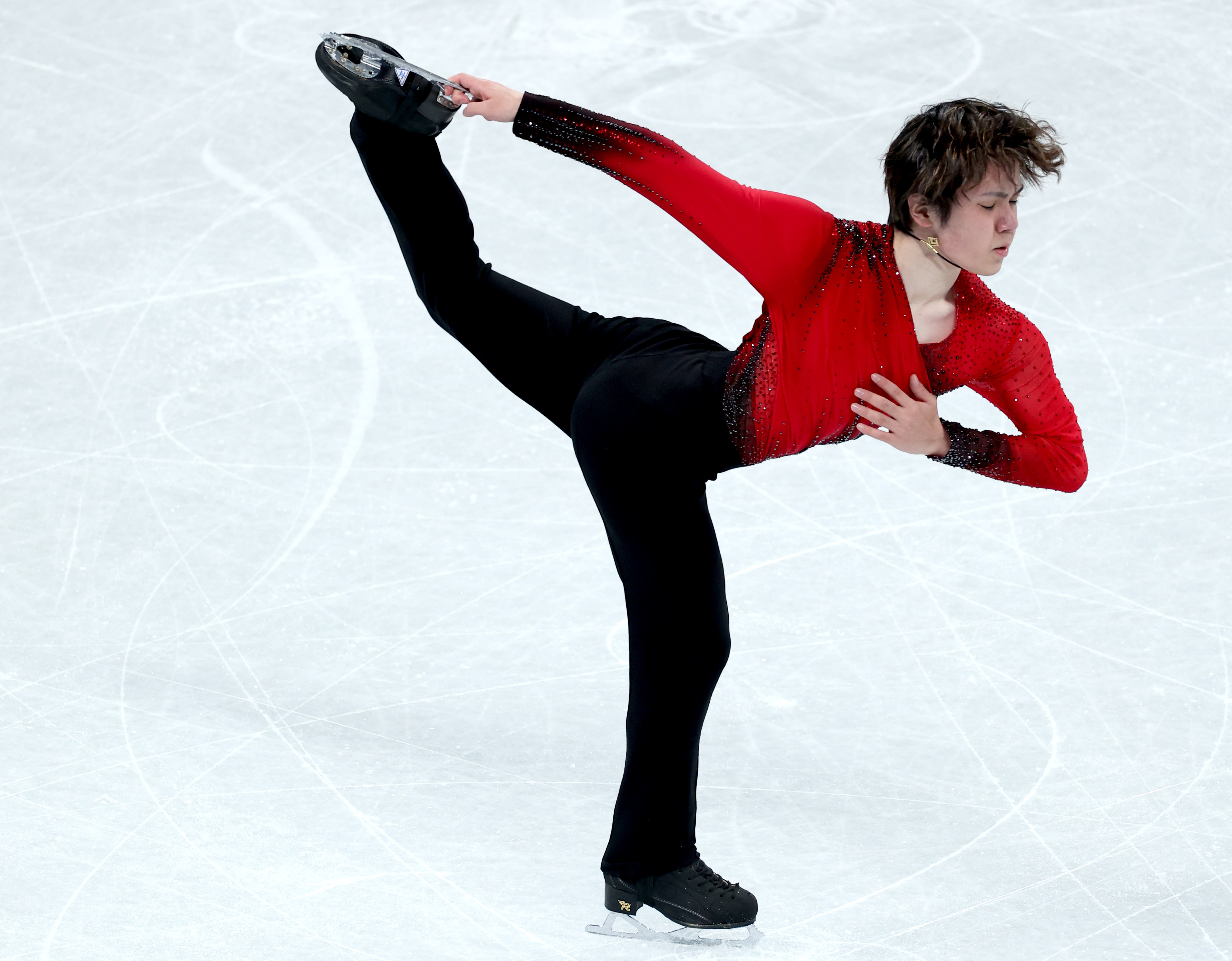 Uno Shoma of Japan competes during the figure skating team event men single skating short program at Capital Indoor Stadium in Beijing, capital of China, Feb. 4, 2022.(Xinhua/Chen Jianli)