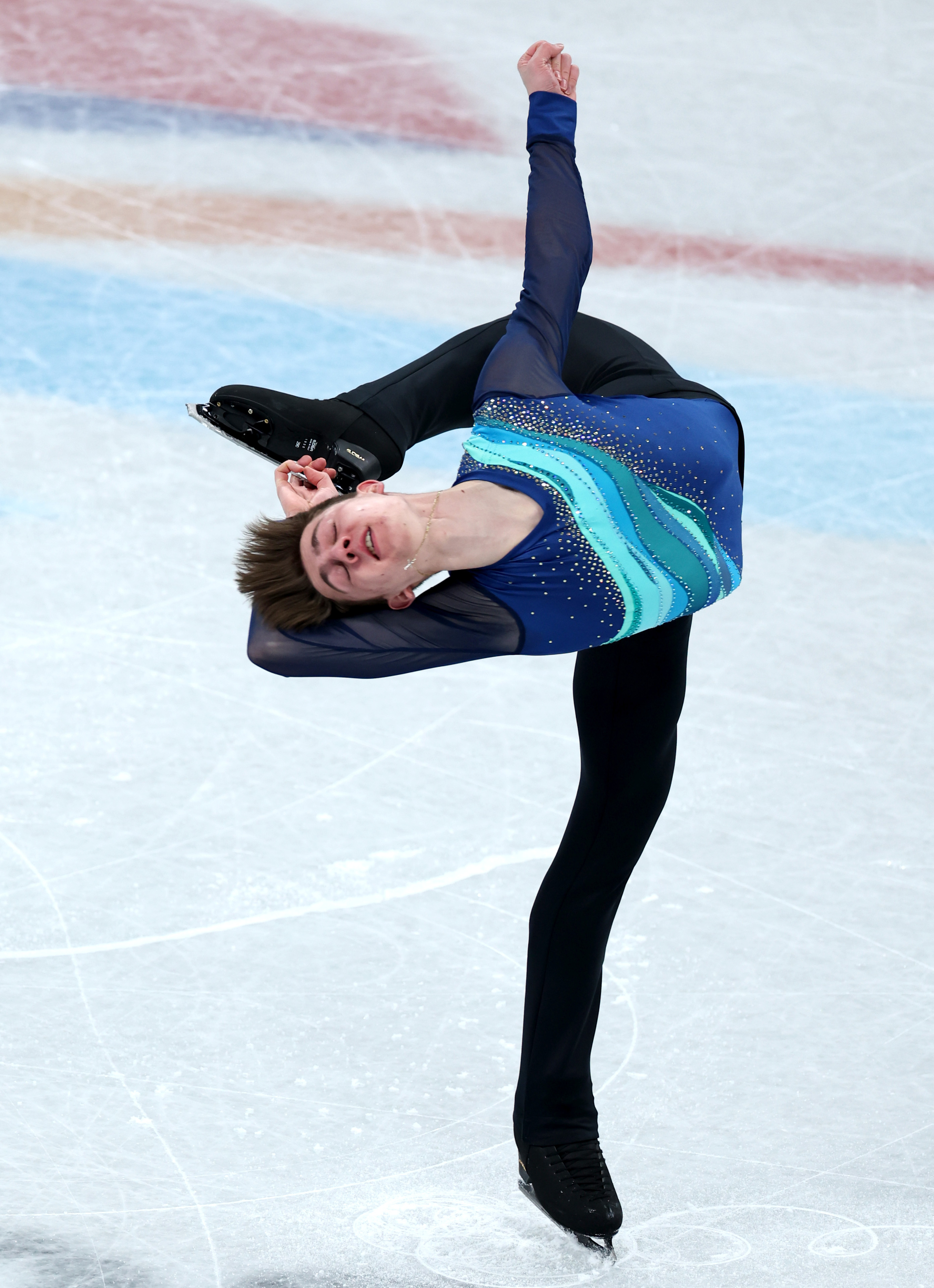 Roman Sadovsky of Canada competes during the figure skating team event men single skating short program at Capital Indoor Stadium in Beijing, capital of China, Feb. 4, 2022.(Xinhua/Chen Jianli)