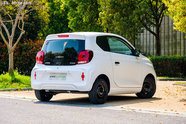 车尾和前脸采用了前后呼应的设计,特别是这个面积较大的尾灯组造型,配合上后保险杠两侧双C造型,看上去十分可爱。在玻璃尾门上,还设有“CLEVER”的LOGO和EV300的标识。