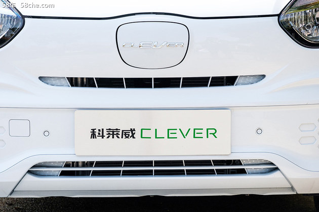 与市面上大部分纯电动车一样,科莱威CLEVER的充电口被设计在车头LOGO的后面,不过这款车只有这一个充电口,且为交流慢充,如果你使用6.6kW的家用充电桩充电,充满需要5个小时。