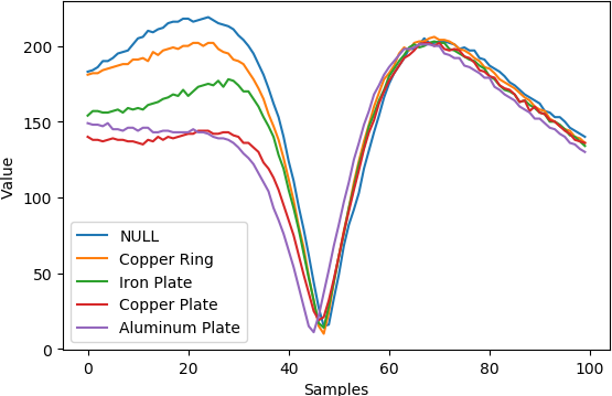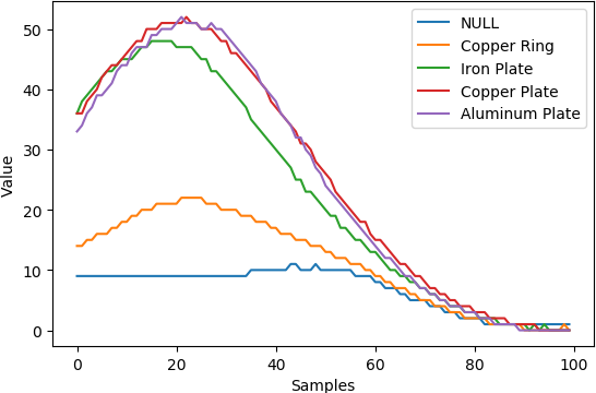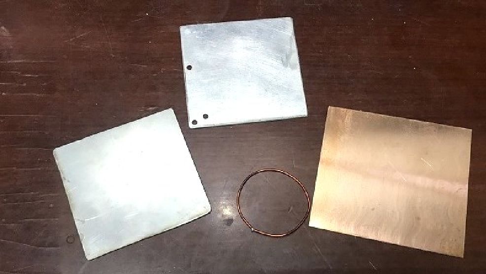 选择了三种不同的金属板来对比对磁场的影响效果。包括不锈钢板、铝板、敷铜PCB板以及一个金属圆环。