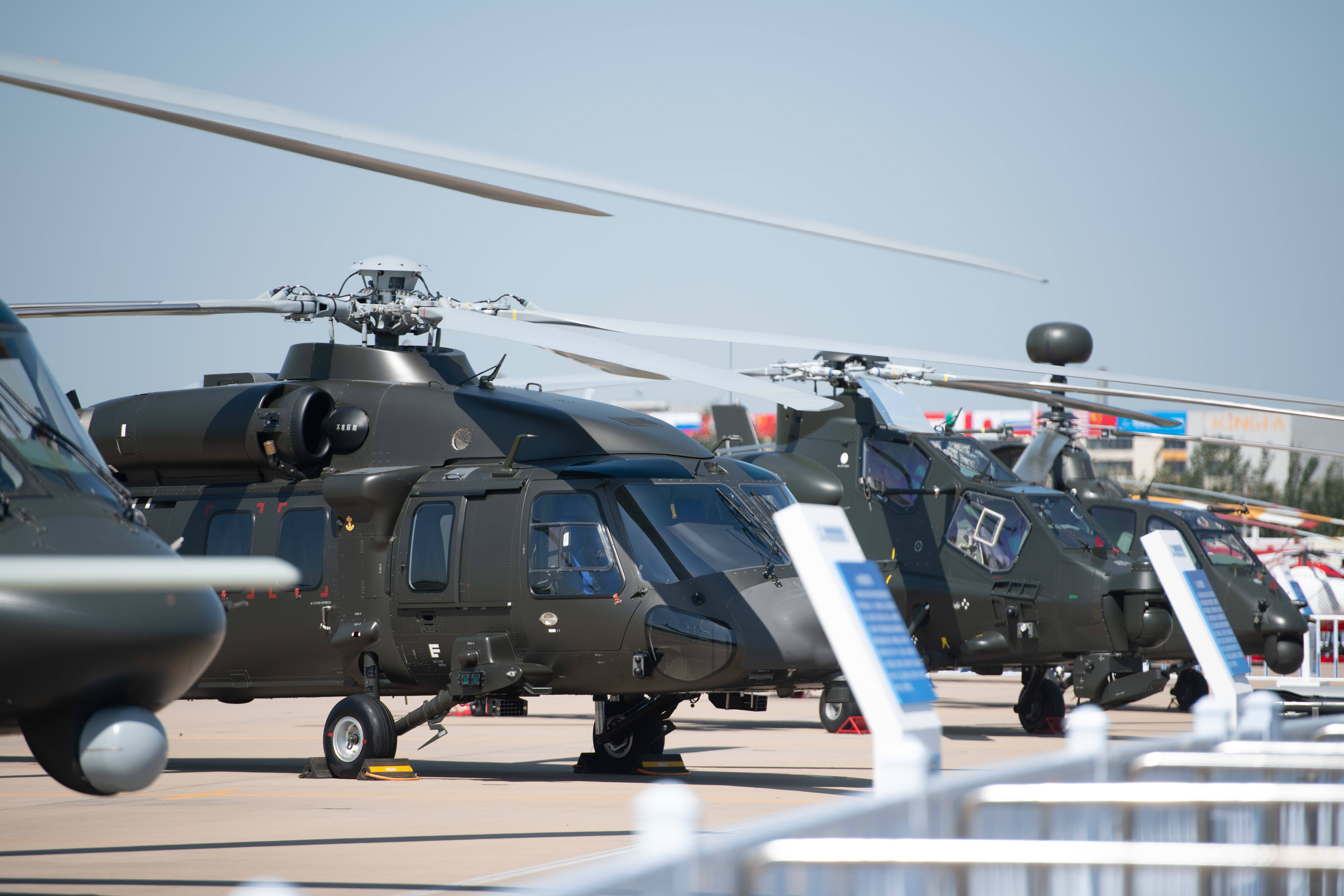 2023年9月14日,第六届天津国际直升机博览会上解放军陆军多型号现役直升机亮相。图自澎湃影像