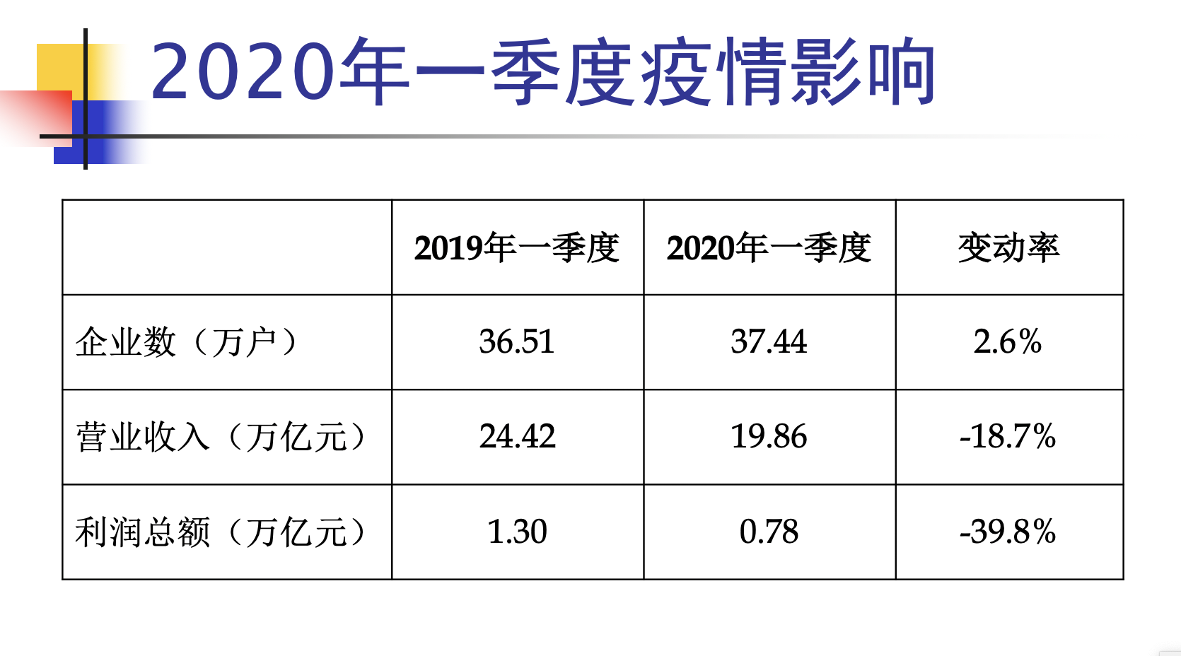 目前的中小企业面临双重困难,第一重,疫情之前中小企业已经面临了一系列困难,包括增长疲软、利润下降和亏损上升,这些问题和结构失衡、体制弊端息息相关。第二重,这次疫情从供给和需求两个方面对中小企业形成了沉重的打击,供给方面,疫情期间停工停产,很多企业不能正常进行经营,虽然目前大多数企业已经恢复生产,但复工其实不等于复产,还有很多企业实际上面临的是需求方面的制约,经营状况困难。