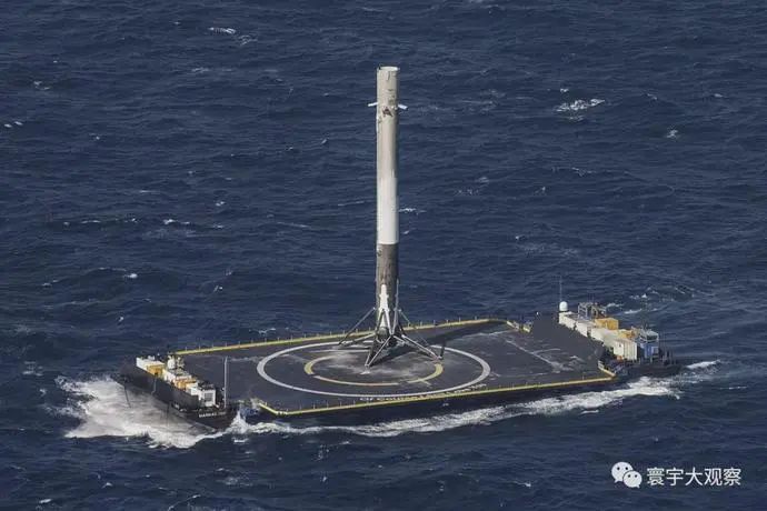 图为在海上无人平台上成功回收火箭,火箭垂直降落在平台上