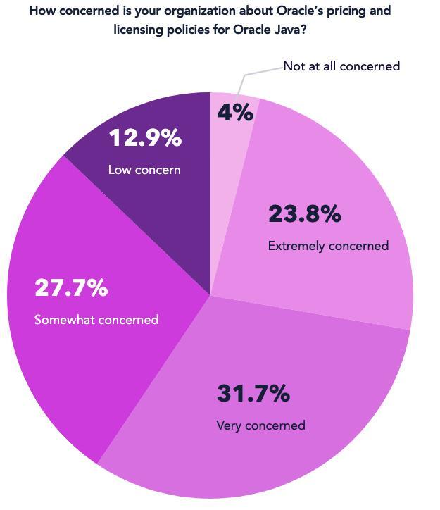 成本是导致从 Oracle Java 迁移到开源 Java 发行版的最主要驱动因素。当被问及 Oracle Java 的成本时,只有 4% 的人表示他们完全不关心 Oracle 的定价和许可政策。