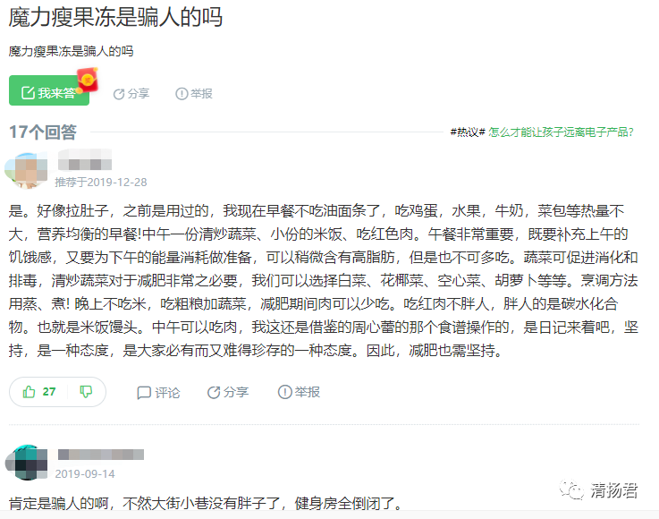 在“魔力瘦果冻是骗人的吗”问题下面也有网友进行了回复: