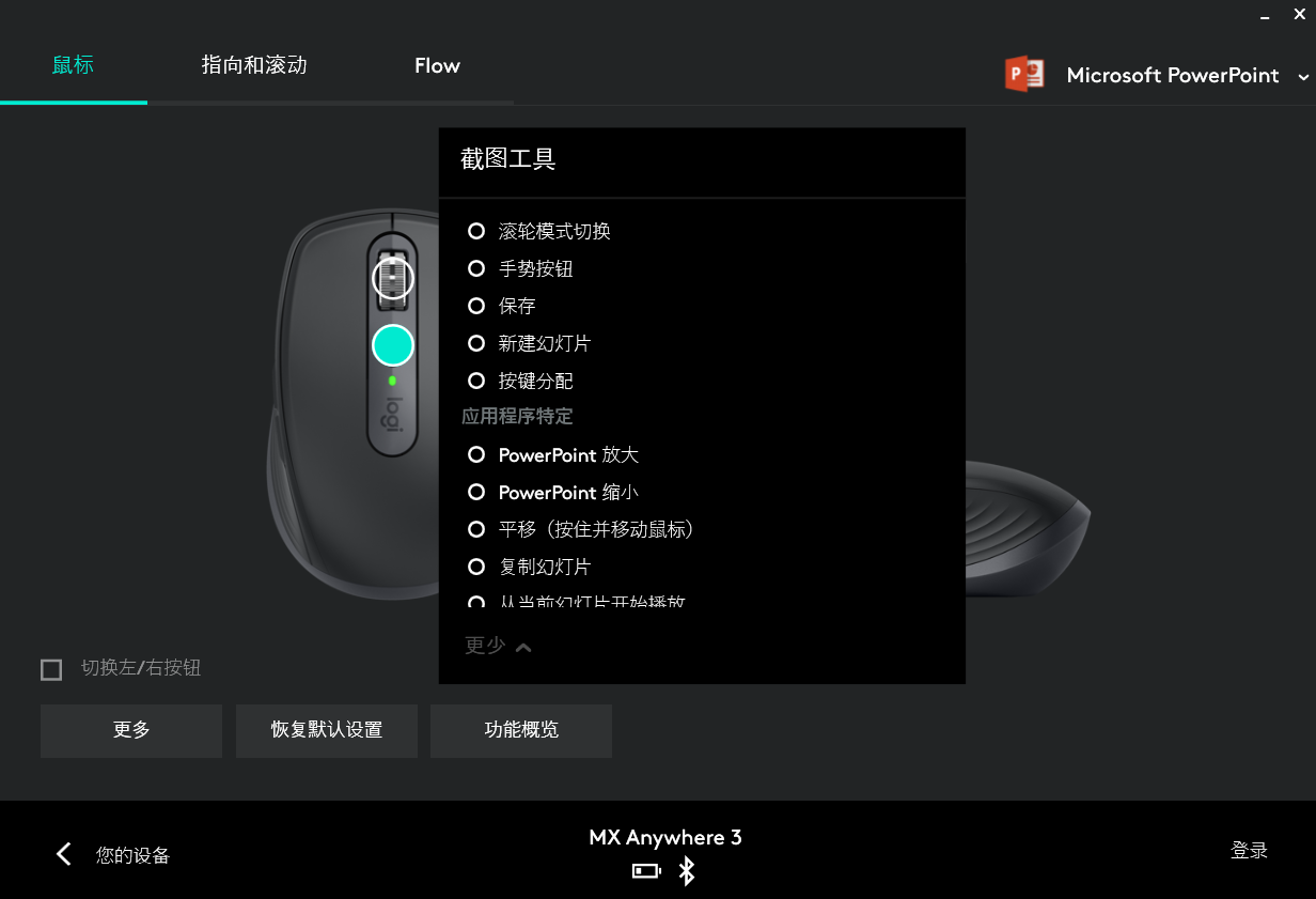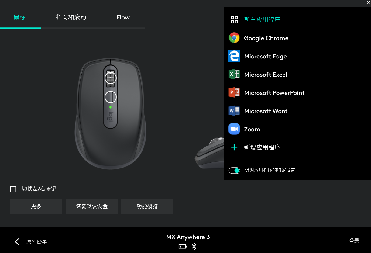 对于办公人士来讲,效率是至关重要的。罗技MX Master 3侧边设置了两枚侧键,它可以根据用户的需求,在Logitech Options软件中,设置为包括PS、Chrome、Office等软件的自定义功能,仅需一键即可实现预设的超多功能,在设计、剪辑、编程等场景中这个功能非常便利,能够进一步提升用户的效率,这项功能是一个非常便捷的升级之处。
