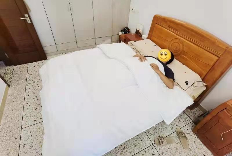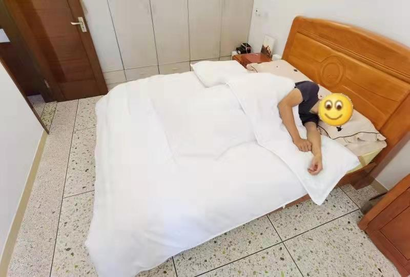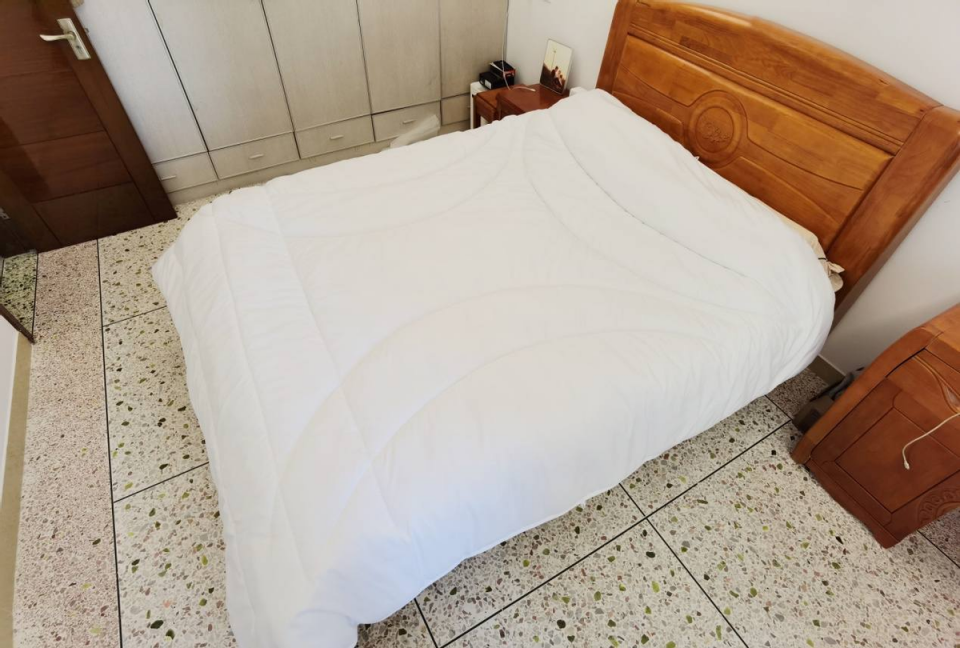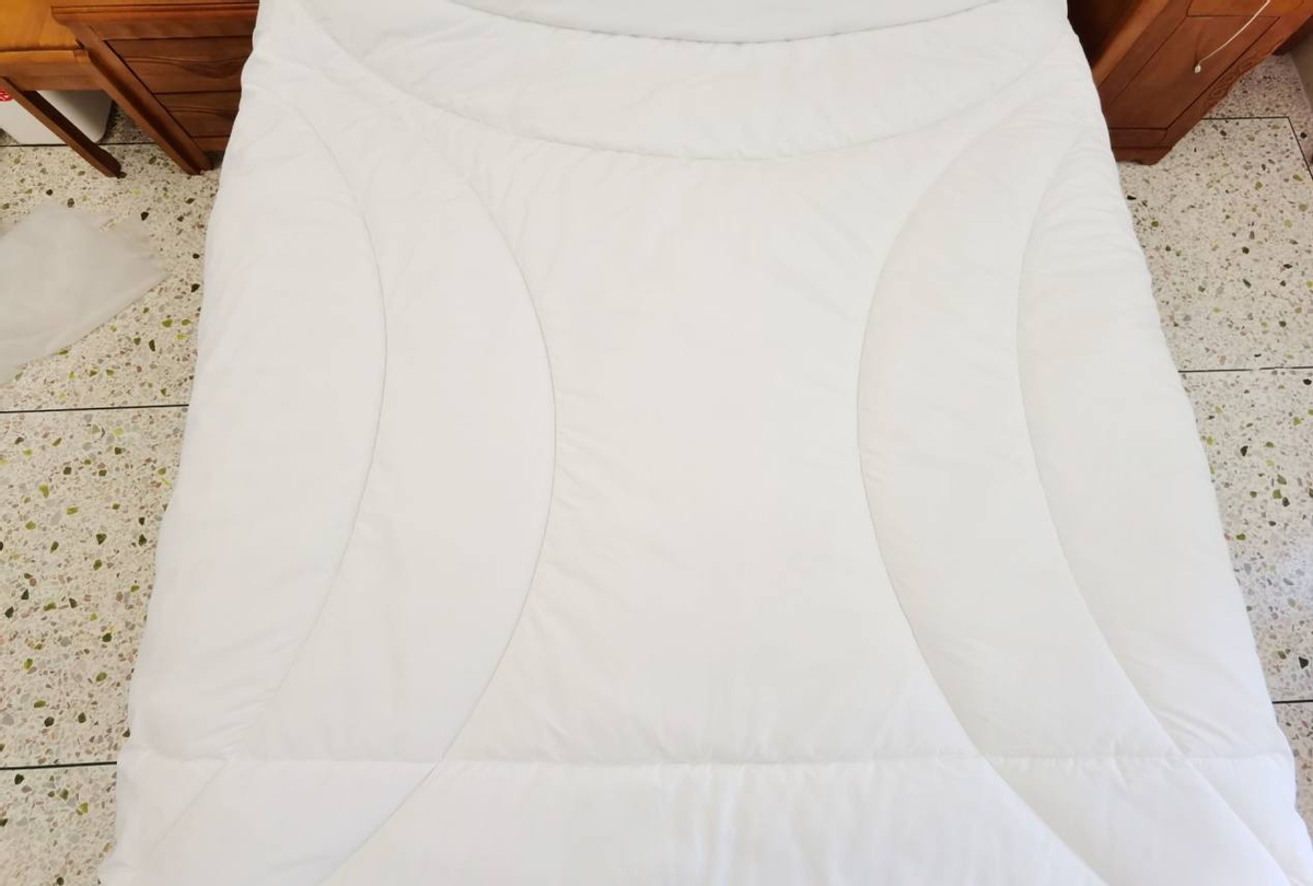 打开纸箱,里面就是一张收卷好的被子。其实这张被子是春秋款,尺寸为150*200cm,适合1.2m的床使用。被子打开的时候并没有任何异味,整张被子都是纯白色,看起来相当的洁净。