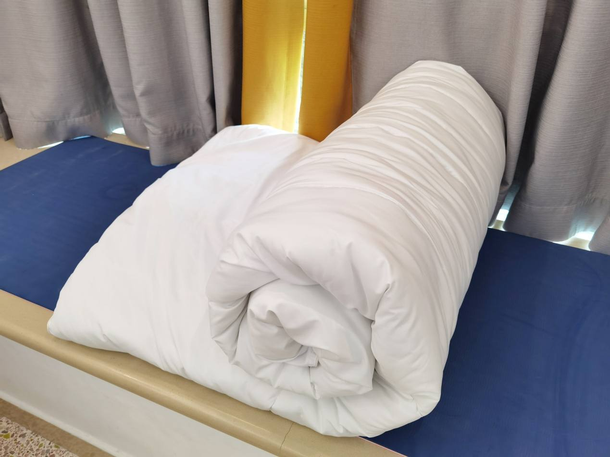 棉被的四周边沿都有预留固定扣环,主要是用于固定被套,防止被套走位。毕竟该棉被为白色,使用被套会更耐脏。