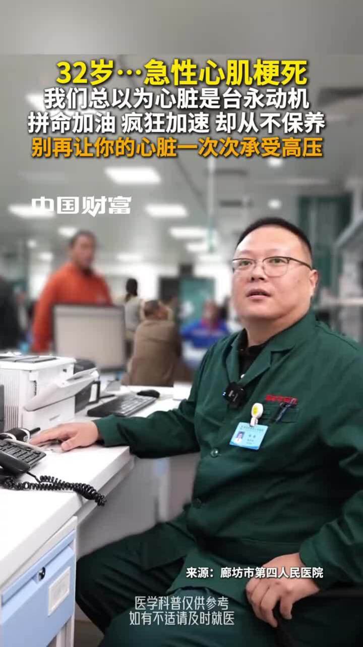 32岁…急性心肌梗死,我们总以为心脏是台永动机,拼命加油、疯狂加速、却从不保养!别再让你的心脏一次次承受高压#今晚先晚安