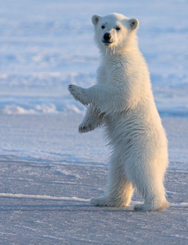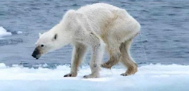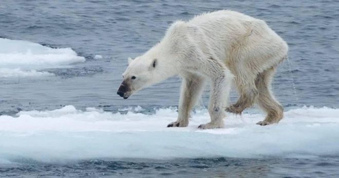 比如,冰层融化让北极熊的栖息地不断缩小,同时也让他们的活动范围变小,从而影响捕猎范围。