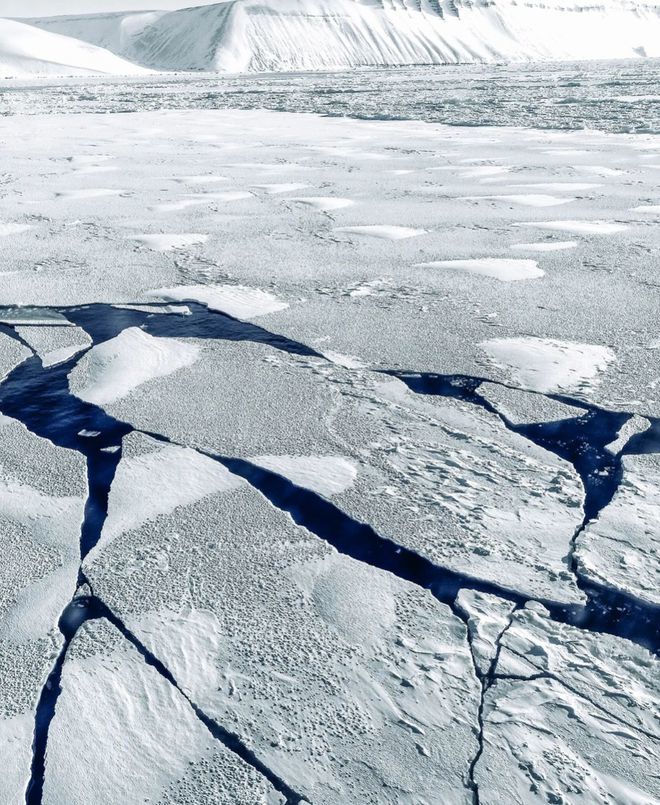 破碎的海冰上挂着裂纹,裂纹之下还有裂纹,层层叠叠寻不到尽头。