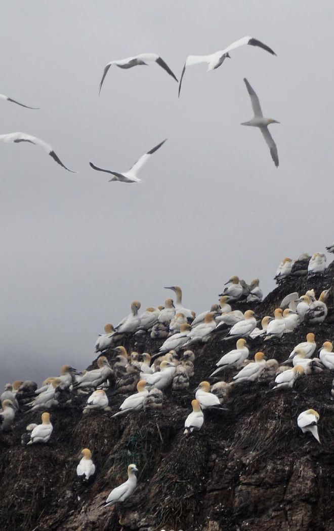 北方塘鹅成群结队地飞过,抖动着羽毛争相停留。