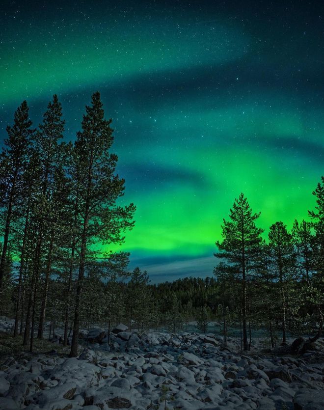 黑夜漫长得怎么过也过不完, 极光成了天空上唯一的装点。
