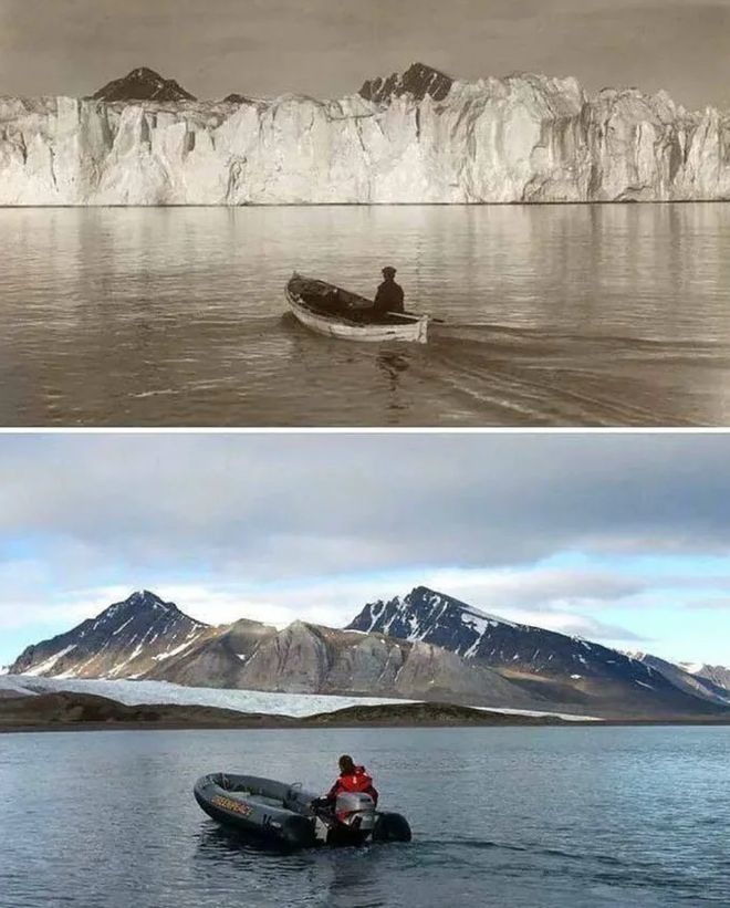 宝子们看看下面这张图,分别在1990s和2000s拍摄于同一地点,短短数十年,北极的冰层消失了大半儿