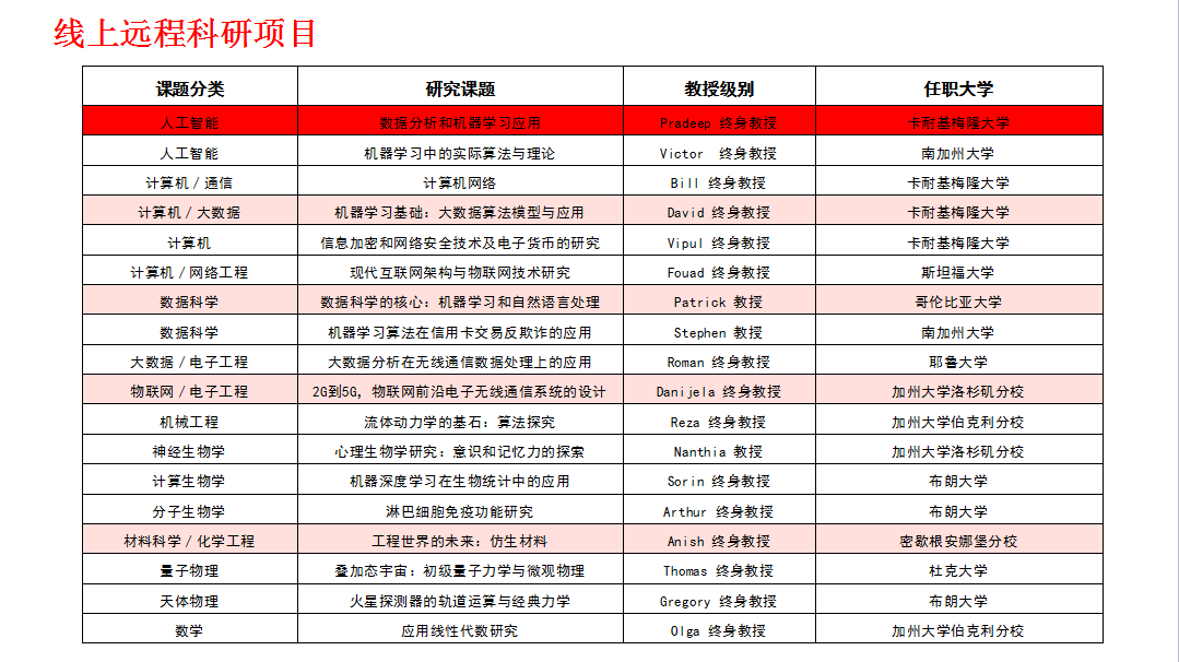 线上背景提升是由美国名校纽约大学,哥伦比亚大学主导的远程科研助理项目,为无暇远赴重洋的研究型申请者提供了便利。