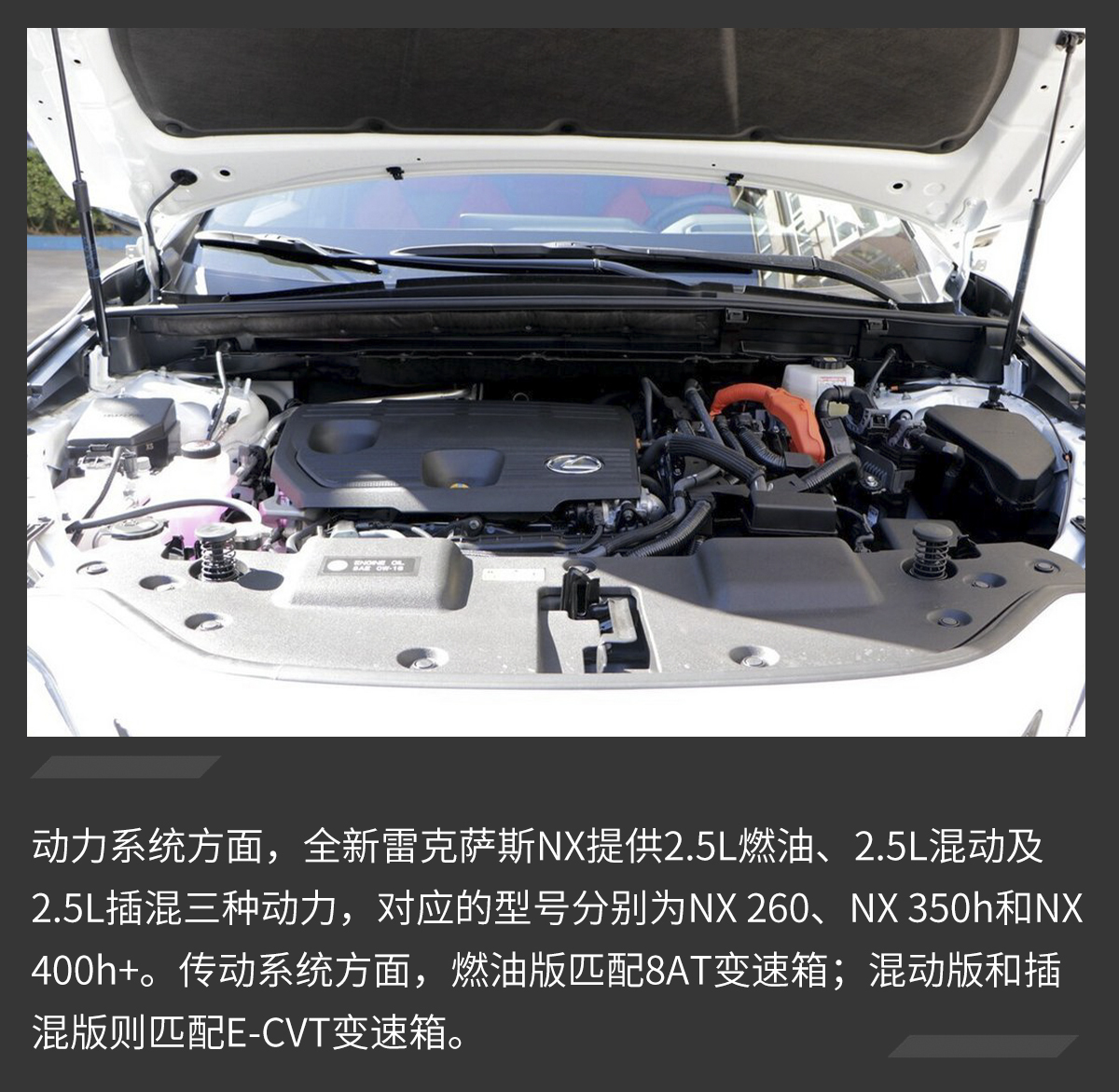 写在最后:作为全新一代产品,我们可以看出,全新雷克萨斯NX在方方面面都做出了改变,首先是外形更加年轻,其次是档次感与科技感也均有提升,而成熟且多样化的动力系统依旧是它的一大卖点。不过相较于竞品,全新雷克萨斯NX的尺寸依旧不占优势,依然延续了“小而精“的路线。