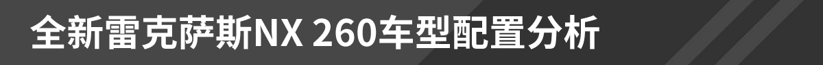 全新雷克萨斯NX共提供三种动力10款车型。其中,NX 260车型提供创驰版、创悦版和创享版;NX 350h车型提供创驰版、创悦版、创享版、创领版和F SPORT版;NX 400h+车型提供畅悦版、畅领版。下面让我们从NX 260车型说起。