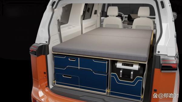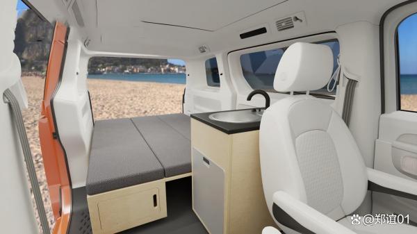 从公开的图片来看,多滑式厨房是这辆车的设计中心,提供35L容量的冰箱、简易水槽和单灶炉和收纳空间。