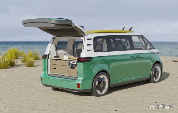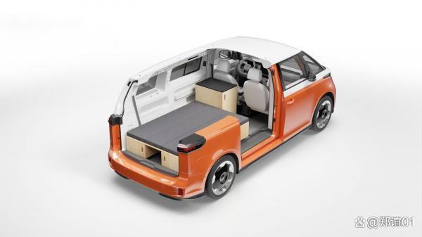 大众电动MPV车型ID.Buzz继承了 大众T1的设计,非常复古时尚。与其它电动汽车一样,它拥有充足的室内空间,可以用作多用途改造车辆。这得益于大众集团电动汽车专用MEB平台基础上前后过行时间短的设计。装载容量基本为1121L,折叠2列座椅时可扩展到2205L。