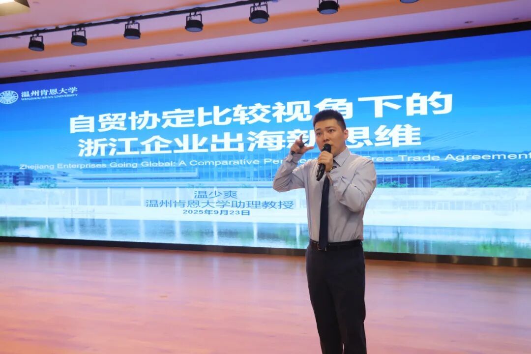 活动中,温州肯恩大学助理教授温少爽还以《自贸协定比较视角下的浙江企业出海新思维》为题,对比分析了企业如何选择自贸协定适用以达到利益最大化,为企业开拓国际市场提供了新的思路。