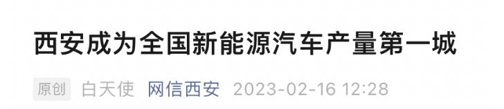 2022年,西安以101.55万辆的新能源汽车产量,一举超越上海的99.5万辆,成为我国新能源汽车产量第一的城市