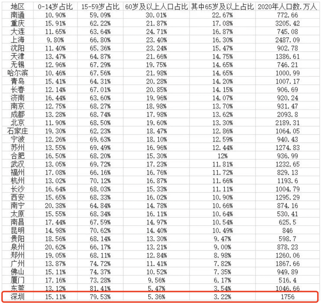 不仅平均年龄低,老年人极少,这也是深圳的一大特色