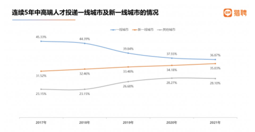 中高端求职投递者的需求,以北上广深为代表的一线城市也呈现出向下降趋势