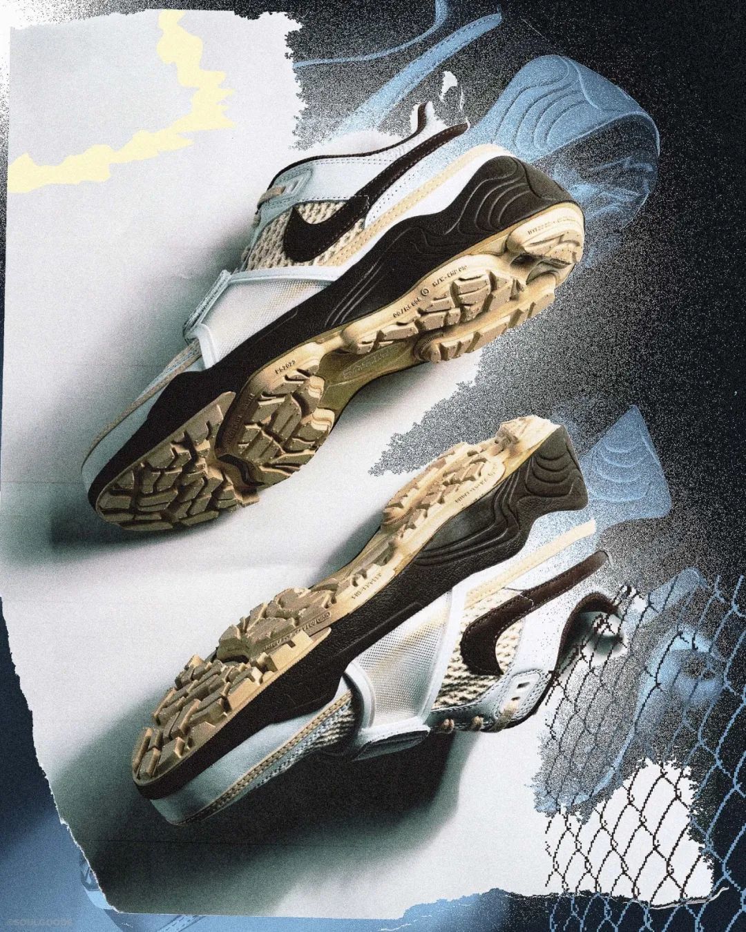 Nike Zoom Field Jaxx 鞋款是该世界的核心,它代表着创新、适应性以及 Travis 的标志性风格和色彩。它也是 Nike Land Shark(橄榄球鞋)和 Nike Spiridon(德克萨斯州田径明星 Michael Johnson 最喜欢的鞋款)的完美融合。Field Jaxx 传递了Travis 对传统运动的热爱,同时也代表了他对德克萨斯田径运动的致敬。