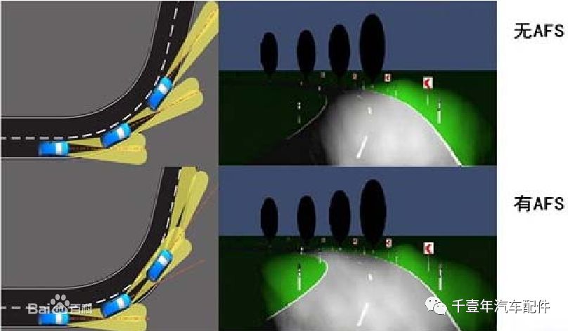 随动转向大灯即自动转向大灯,也可以叫做自动头灯。随动转向大灯简称AFS,全称为汽车自适应前大灯系统或者智能前照灯系统。自适应前大灯系统 AFS(Adaptive Front-Lighting System),能够根据汽车方向盘角度、车辆偏转率和行驶速度,不断对大灯进行动态调节,适应当前的转向角,保持灯光方向与汽车的当前行驶方向一致,以确保对前方道路提供最佳照明,并对驾驶员提供最佳可见度,从而显著增强了黑暗中驾驶的安全性。在路面照明差或多弯道的路况中,扩大驾驶员的视野,而且可提前提醒对方来车。(来源:百度百科)