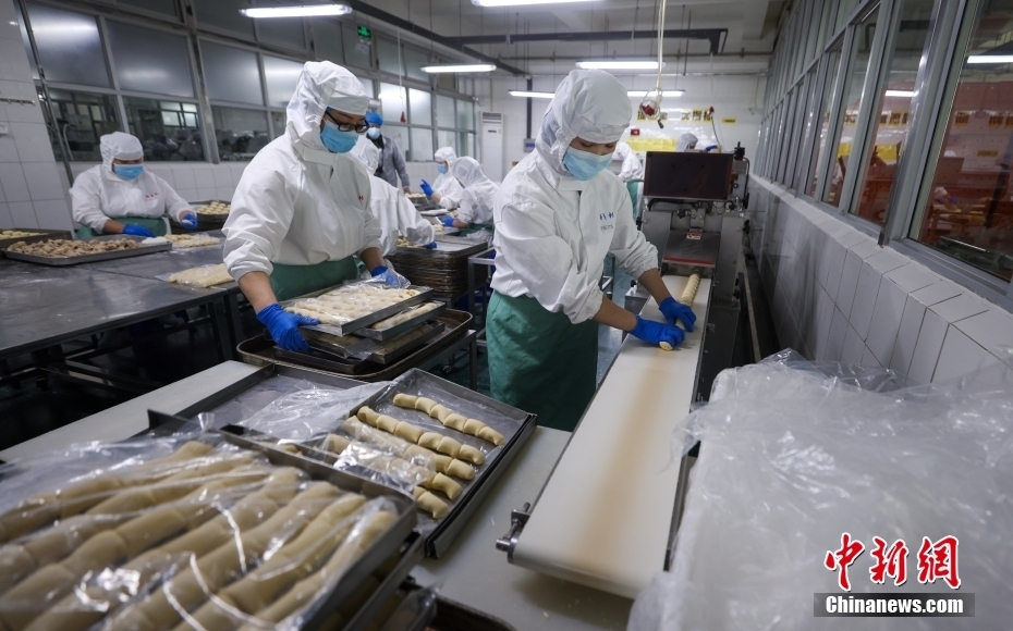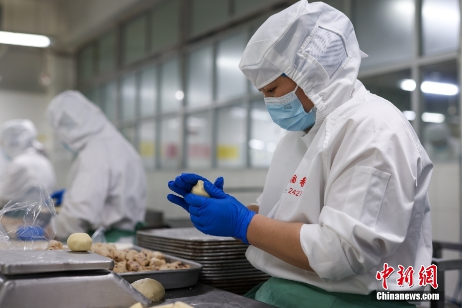 11月26日,“摄影记者走进老字号”活动探访了有着百余年历史的糕点品牌——北京稻香村。北京稻香村品牌创始于1895年(清光绪二十一年),2006年,北京稻香村被商务部认定为“中华老字号”。如今,北京稻香村已发展成为一家现代化的食品公司,主要经营糕点、熟食、速冻食品等16大类600多个产品,被消费者亲切的称为“京城百姓大食堂”。图为位于北京市昌平区的北京稻香村食品厂内,工人师傅在制作纯手工糕点。中新社记者 贾天勇 摄
